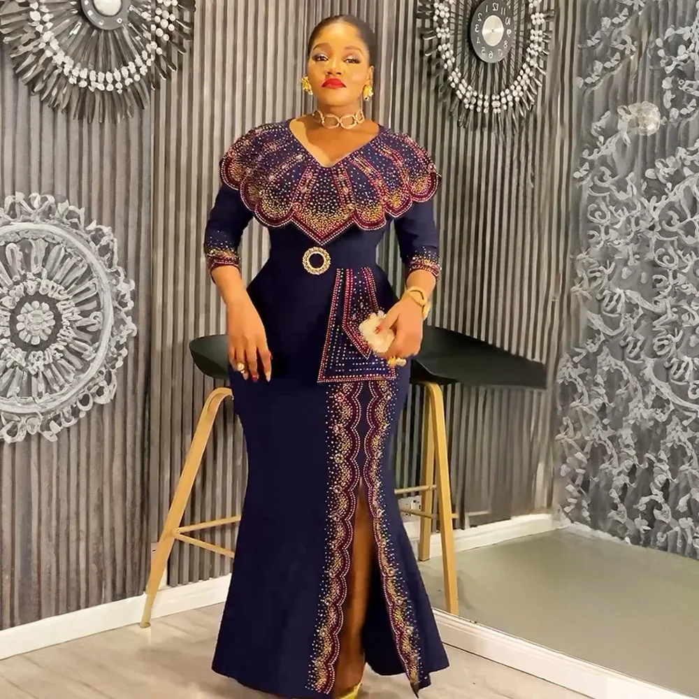 Traditional African Prom Dress Elegant Diamonds Big Size Women's Dresses Sexy Long Evening Dress for Women